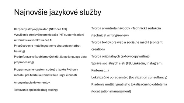 K. Absolonová introduced the activities and members of the Association and her company ASAP-translation.com to new students at the Department of English Studies at Trnava University. The lecture focused mainly on the range of job positions and activities that linguists can currently perform. The students were particularly interested in the latest opportunities for employment in connection with the advent of AI.