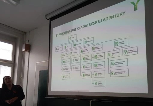 K. Absolonová from ASAP-translation presented the Association to translation students at UKF. In addition to her view on what it means to be a professional, she also pointed out that the position of a traditional translator is undergoing radical transformation in today's world due to the increasing use of AI tools and changing market needs. E. Kosztolányiová from Yamagata explained what the work of a translation project manager entails and what other positions a linguist can hold in a larger translation company.