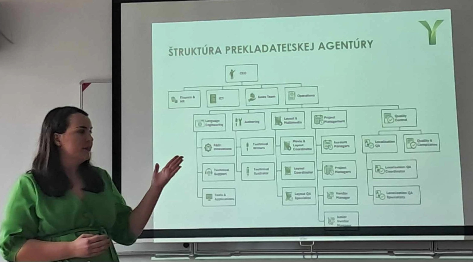 K. Absolonová from ASAP-translation, Emília from Yamagata Europe, and Michal from Otago Translations visited the University of Economics in Bratislava. In addition to the usual presentation of the principles and activities of the Association, Emília presented the opportunities for skilled linguists to work in various departments of a large translation company, such as project manager, supplier recruitment manager, quality reviewer, terminologist, format controller, or technical editor.... Michal described the individual phases of a translation project.